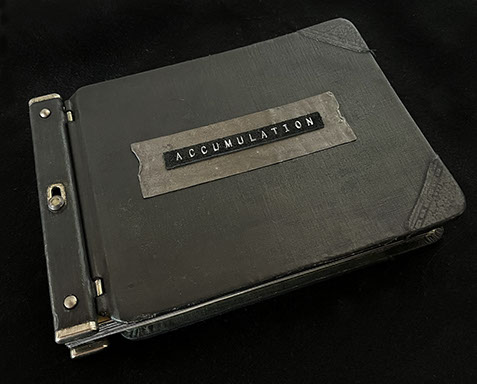 This work was prompted by the Kavanaugh hearings. Like many women, my anger was grounded in a lifetime of experience, uncomfortable silence, and suppression. Thirty-seven incidents of aggression in my life are presented in a matter-of-fact accounting ledger. The number was limited by the number of pages in this found book. Each divider page accumulates another hammered lead shot. The text is lasercut in the paper to allow glints of the hammered lead shot to show through. The total weight is 5 pounds.
