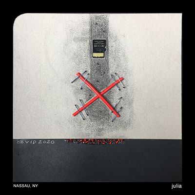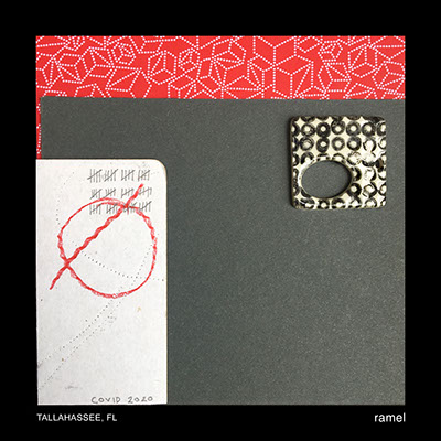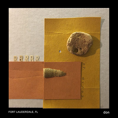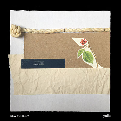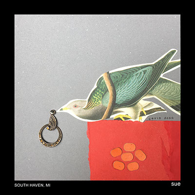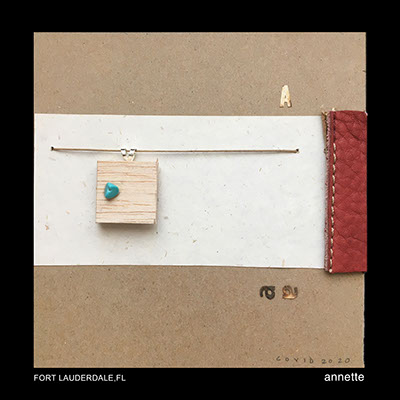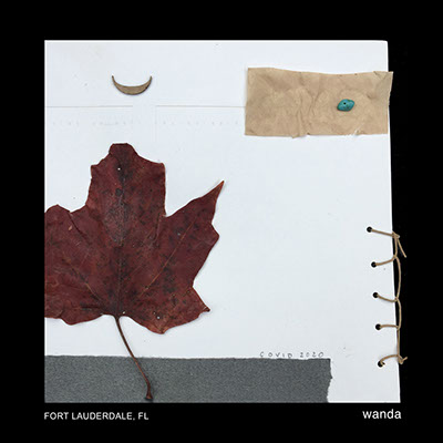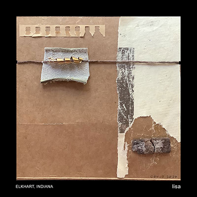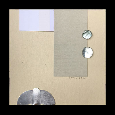 An evolution of Calendar, the COVID collages are made entirely from materials on hand. These contemplative works provide finite solace in a time of uncertainty. Giving them to friends, family, and community provides me with the opportunity to nurture connections in a time of social isolation. Each work is named for the recipient.
