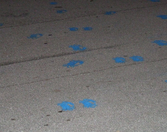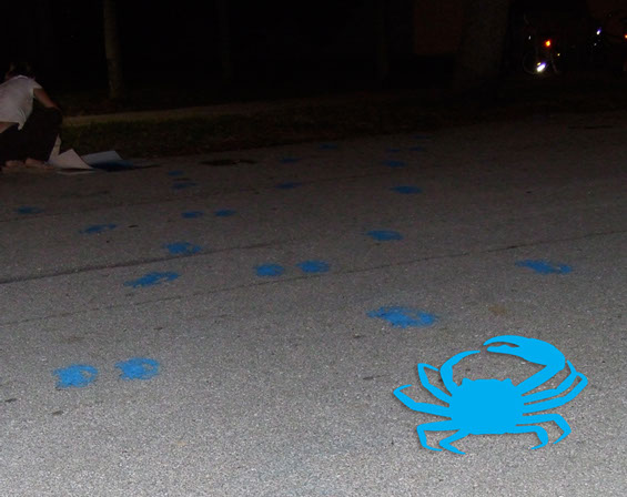 At one time blue crabs blanketed the South Florida roadways in quantities that could stop traffic. The post-war population boom and resultant loss of habitat impacted the visibility of blue crabs in the area. The Crossings project consists of dozens of blue crabs spray painted across roadways. They are painted with a temporary paint that washes away within days providing a narrow opportunity for a sighting. Painting the crabs across the road adds humor, nostalgia and whimsy to the urban environment while at the same time comments on the impact of our attempts to coexist with native species.