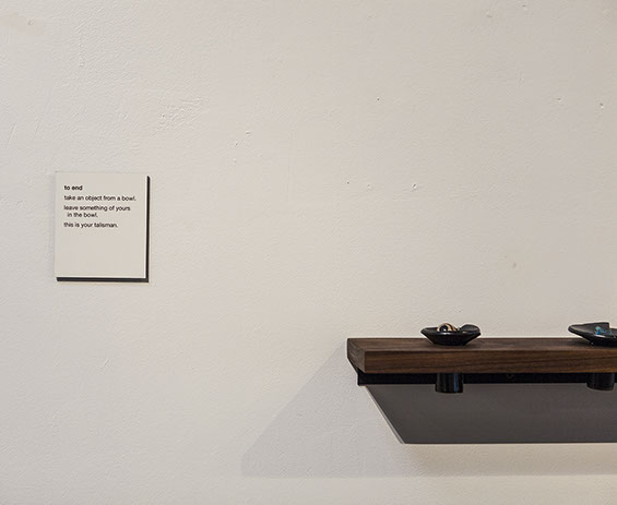 Part of the Ritual & Repetition exhibition, this work invites audience participation. The audience is invited to take an object and leave an object transforming them with the power of a talisman. This is a work in a series that investigates the power of rituals.
