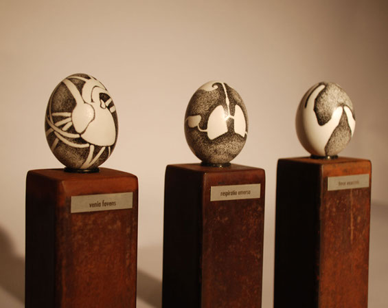Steel Base, Ink on Hollow Eggs
