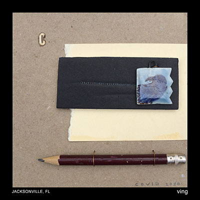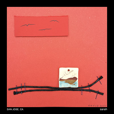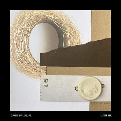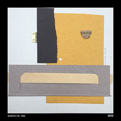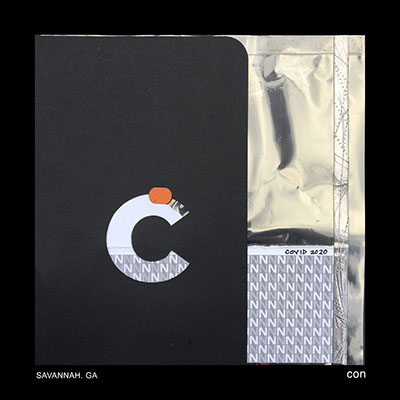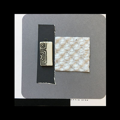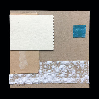 An evolution of Calendar, the COVID collages are made entirely from materials on hand. These contemplative works provide finite solace in a time of uncertainty. Giving them to friends, family, and community provides me with the opportunity to nurture connections in a time of social isolation. Each work is named for the recipient.