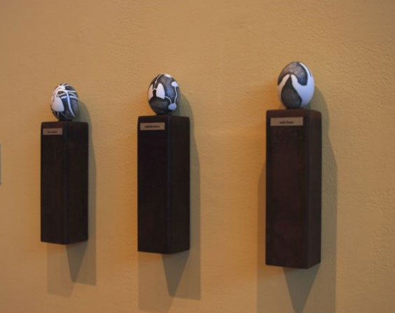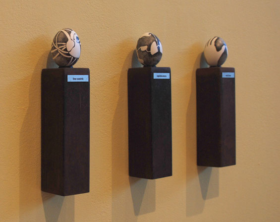 Steel Base, Ink on Hollow Eggs