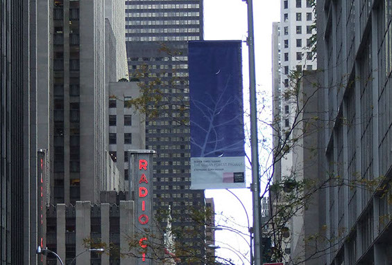 The Urban Forest Project placed 200 banners by selected designers, artists, photographers and illustrators from around the world in New York’s Times Square. Each banner used the form of the tree, or a metaphor for the tree, to make a powerful visual statement. Together they created a forest of thoughtful visual art in one of the world’s busiest, most energetic and emphatically urban intersections. visited by 30 million people each year to encourage passersby to pause, if only for a moment, to be entertained, stimulated or provoked by the work.*
